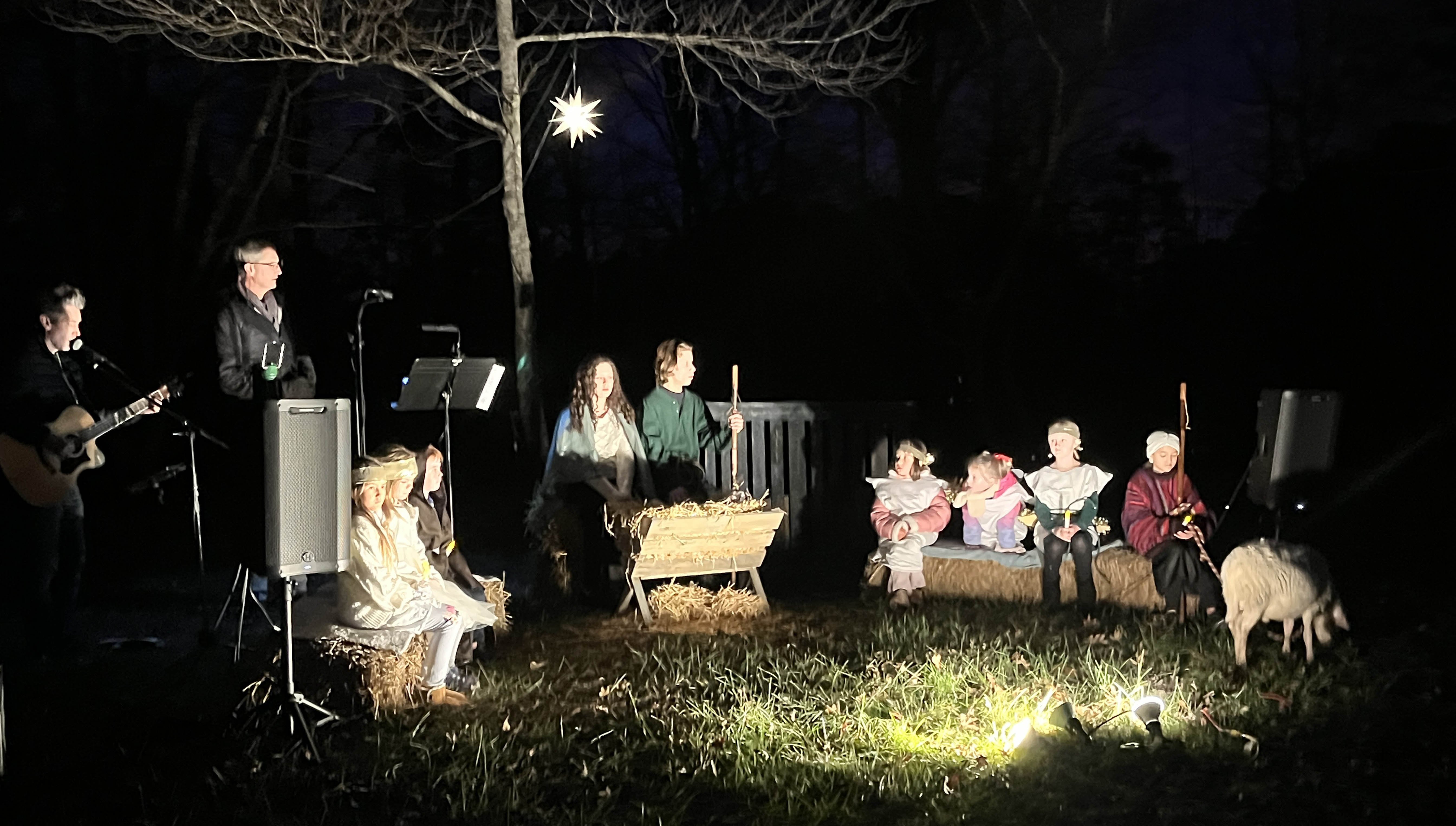 Over sixty people joined in a fun celebration of Jesus’ birth. Rachelle Shields opened the festival with a wonderful rendition of “O Holy Night.” Pastor Kerry O’Neill read the Christmas story in Scripture while Josh Miller led everyone in singing Christmas carols. Neighborhood children and youth formed a nativity tableau accompanied by Boaz the donkey and King the sheep. Following the pageant, everyone gathered in the Fawn Lake Pole Barn to celebrate with cake and sing happy birthday to baby Jesus. We look forward to seeing everyone again next year!